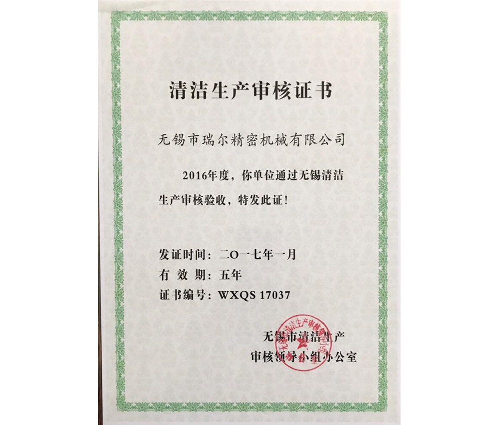 Wuxi cleaner production certificate